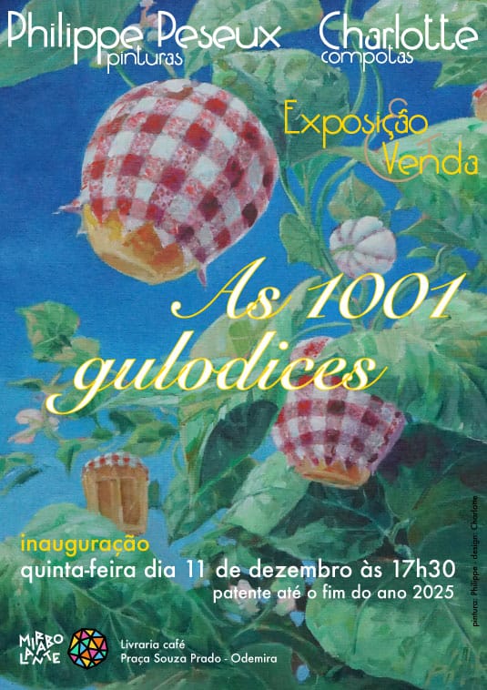 Lors du marché de Noël d’Odemira, j’inaugurerai le 11 décembre à la librairie Mirabolante une autre exposition avec les confitures de Charlotte. Venez en profiter !